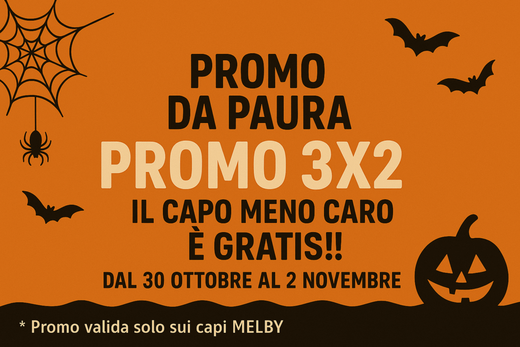 Dal 30 ottobre al 2 novembre, acquistando 3 capi MELBY, il meno caro è gratis.